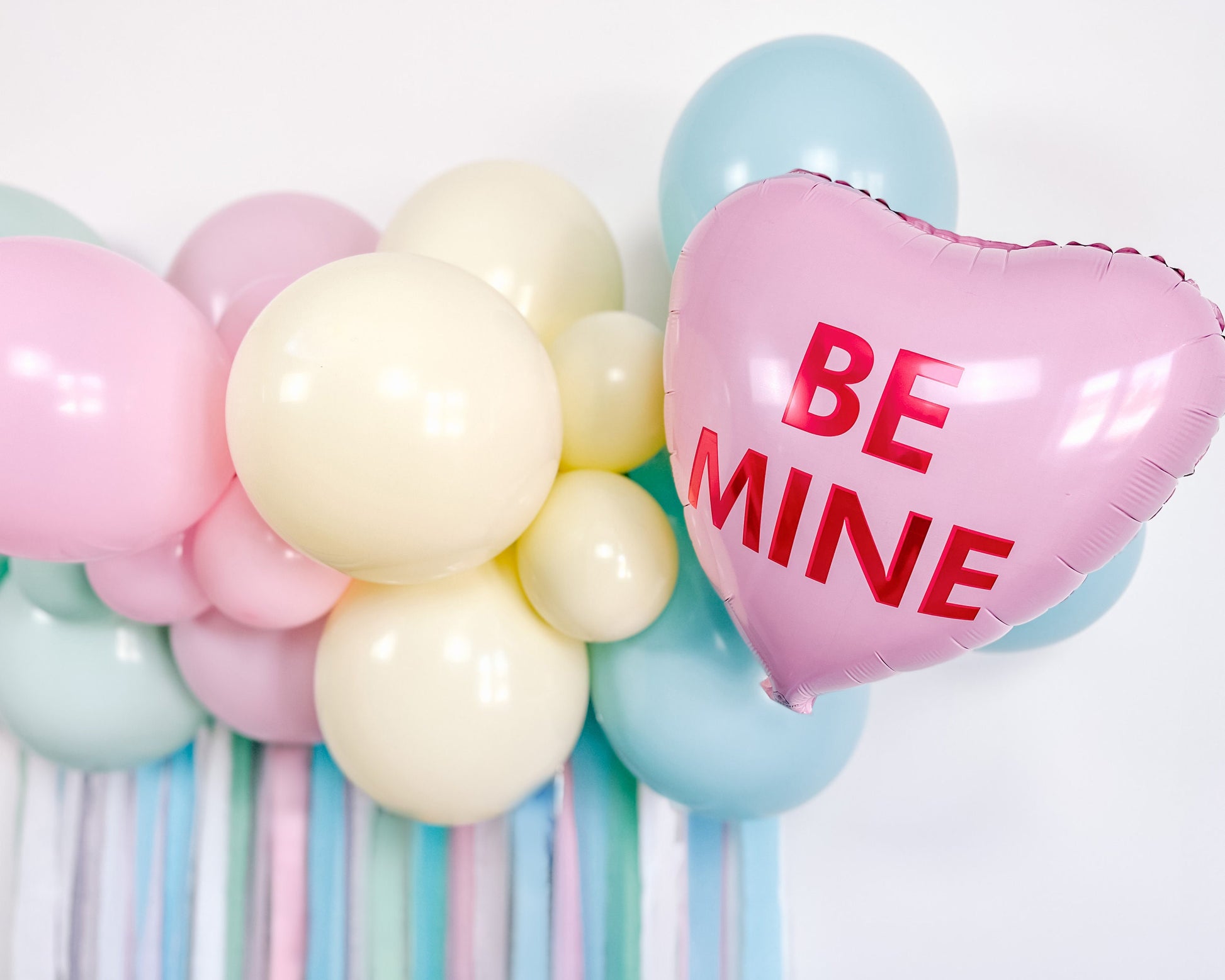 Celebrate love season in a big way with this "conversation hearts" themed balloon & streamer backdrop kit! A festive way to celebrate Valentine's Day with your little ones! It’s easy to do with all materials and instructions included in this DIY kit!